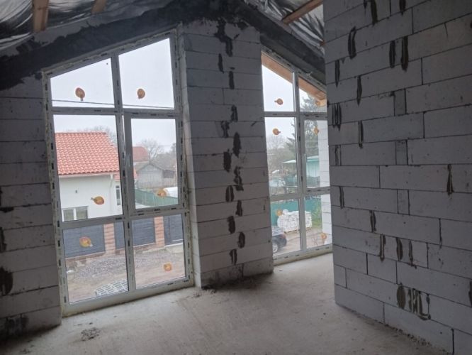 120 м2, кол-во этажей - 2, материал - газоблок, новый дом, дом построен, но не сдан, участок 2 соток, участок пустой, рядом вода, парковка, свет, водопровод, канализация;