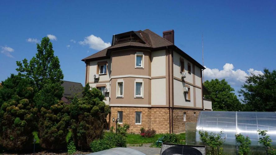 Три поверхи + мансарда, 6 житлових кімнат (3 спальні), 3 підсобні приміщення, кухня, їдальня, сауна, 4 санвузли, тераса, більярдна, майстерня, гараж 38 кв.м. на 2 машини. Винний погріб. Будинок утеплений. Дах - новий Новозеландська металочерепиця. Комунікації працюють на відмінно. Газове опалення, двухконтурний дуже економний котел Viessmann. Електрика 3 фази, 32кВт.