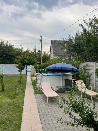 Капітальний навіс для авто, дровник. Автоматичні розсувні ворота, каркасний басейн на 6 м3, тротуарні доріжки, мангальна зона. Доглянута ділянка 6 соток з садком, та невеличким городом. Хвойні дерева, кущі троянд, гібіскусів.