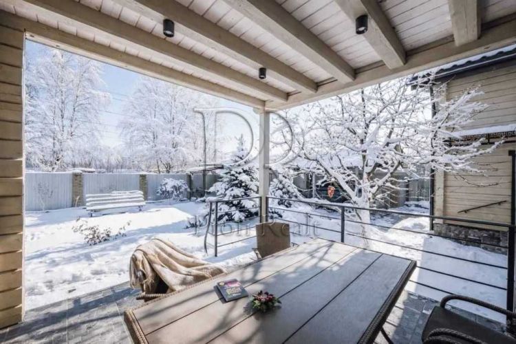 Тут продумано організований простір двору на ділянці 6 соток. Теплий, екологічний будинок зі зрубу карпатської сосни, побудований за індивідуальним проєктом. Площа: 143 м + дві тераси 25 м + гостьовий будинок-баня 60 м. Перший поверх - вітальня, кухня, кімната, санвузол з душовою кабіною, гардеровна, котельня, тераса. Другий поверх - дві спальні, гардеровна-кабінет, санвузол, тераса.