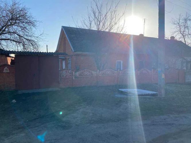 Перший будинок (половина будинку): Загальна площа 65 кв.м, житлова 44 кв.м, кухня 9 кв.м. Планування включає: коридор (7 кв.м), санвузол (5,3 кв.м), кухню (9,2 кв.м), три ізольовані спальні (9,9 кв.м, 8,2 кв.м, 7 кв.м) та гостьову кімнату (18,8 кв.м). Під будинком розташований погріб.