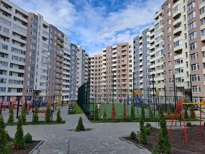 Квартира сира у новобудові, розміщена в середині будинку. Будинок зданий у 2022р., оснащений підземними парковками.