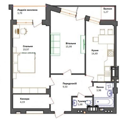 Продається простора двокімнатна квартира на комфортному 4-му поверсі з вдалим плануванням та можливістю його зміни. Квартира у сирому стані після забудовника, будинок на стадії здачі, тривають оздоблювальні роботи. Локація дуже зручна: поруч навчальні та розважальні заклади, а також зручна транспортна розвязка — все необхідне для комфортного життя та вигідної інвестиції.