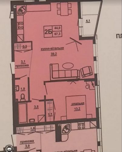 Загальна площа 67,3 м.кв. Квартира сира, стан після забудовника.
