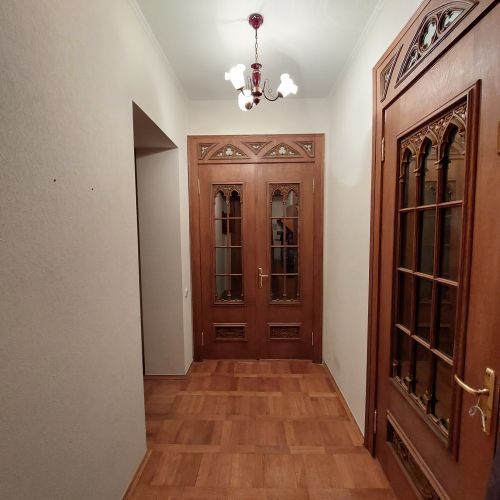 О квартире: 74/50/9м2, евроремонт, высота потолков 3м, комнаты раздельные, с/у раздельный, на полу паркет, балкон, окна во двор, интернет, холодильник, мебель, кухонная мебель