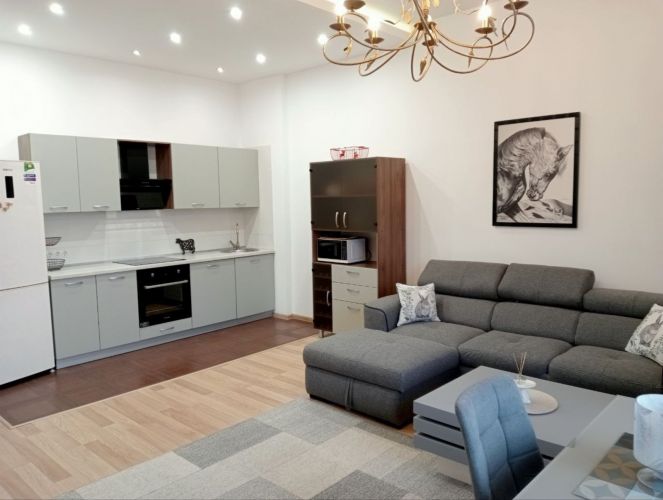 Площадь 81м2, спланирована как просторная кухня - гостиная (27м2) и 2 раздельные спальни, 2 санузла, 2 балкона.