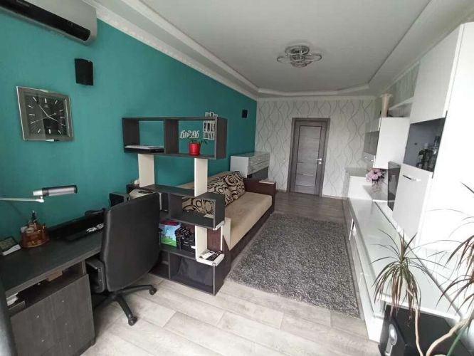 Це повністю готова до проживання квартира з якісним ремонтом, меблями та технікою. Встановлено три кондиціонери, вбудовану кухню, двотарифний лічильник електроенергії, лічильник тепла. Санвузол роздільний. Є дві засклені лоджії. Панорамні вікна виходять не у двір західна сторона, тиха й затишна.