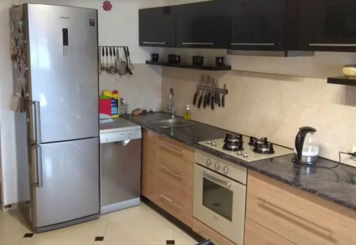 Продається дворівнева квартира у передмісті Тернополя. Квартира в цегляному будинку, займає 5 та 6 поверхи, другий рівень не мансардний. Загальна площа 87,8 кв.м, на першому поверсі розташовані кухня, вітальня та санвузол, на другому — спальня дитяча та санвузол.