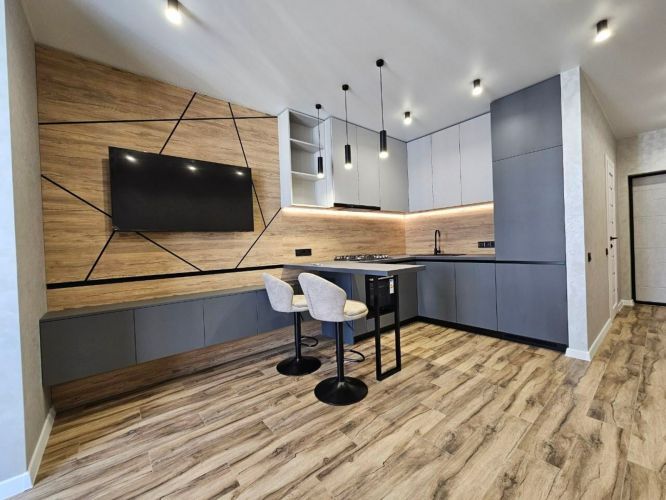 Спланирована как кухня - студия и отдельная спальня, гардеробная.