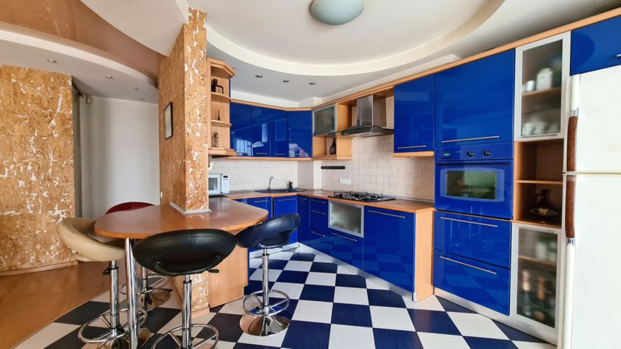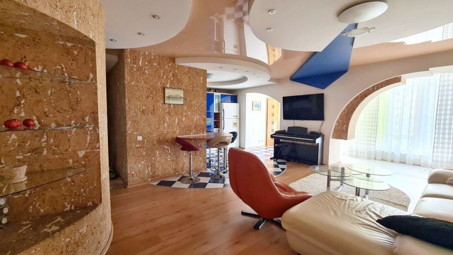 Просторная, светлая квартира 151 м2 с шикарной планировкой; кухня-гостиная совмещена с большой лоджией застекленной панорамными окнами , 4 раздельные комнаты, 2 санузла, гардеробная, балкон с зимним мини-садом.. Не угловая, двухсторонняя.