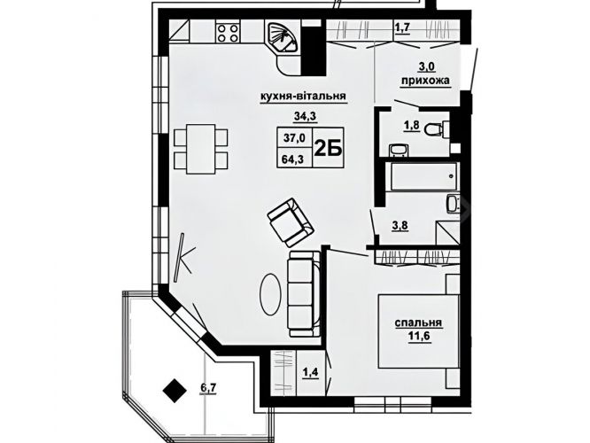 О квартире: 64м2