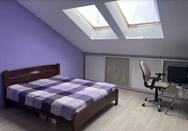 Загальна площа 83 кв.м, на першому рівні — велика кухня з виходом на засклений балкон, вітальня кімната, та санвузол; на другому рівні — коридор зі сходами на горище, дитяча кімната, спальня з вбудованими шафками та шафою-гардеробною, санвузол з душовою кабіною.