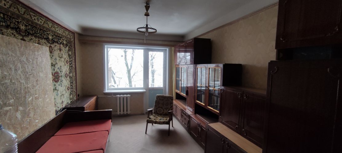 О квартире: 45/30/8м2, жилое состояние, высота потолков 2.6м, комнаты смежные, с/у совмещенный, на полу паркет, балкон, двусторонняя, холодильник, мебель, кухонная мебель