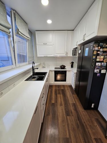 Поменяна проводка, трубы радиаторы, сантехника. Установлены МП окна с зеркальной тонировкой, натяжные потолки. Новая встроенная кухня с каменной столешницей, каменная мойка с измельчителем, большая посудомойка, 3 кондиционера, бойлер на 150л. На полу ламинат, в прихожей теплый пол. Качественная бронь дверь.
