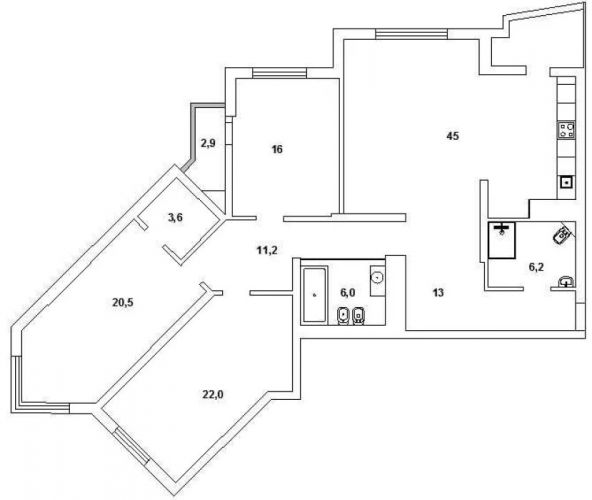 У квартирі простора кухня- вітальня 45 кв.м, 3 спальні, гардеробна, 2 с/в.