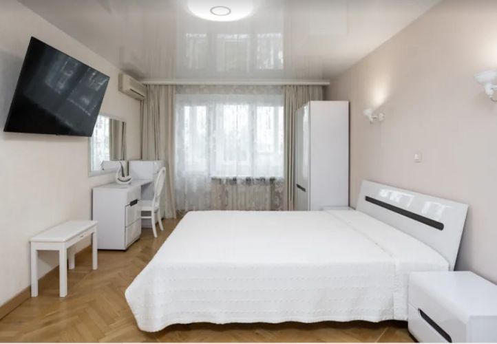 О квартире: 77/47.5/8.5м2, евроремонт, комнаты раздельные, с/у раздельный, на полу паркет, 2 лоджии, окна во двор, TV, холодильник, мебель, кухонная мебель