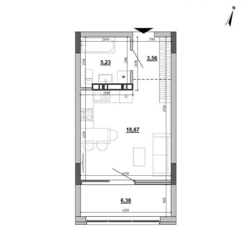 У квартирі кухня-вітальня, місце під гардероб, суміжний с/в, засклена лоджія.