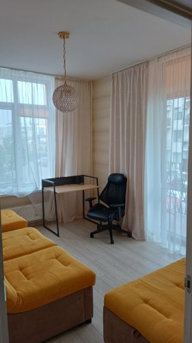О квартире: 45/29/14м2, евроремонт, комнаты раздельные, с/у совмещенный, на полу ламинат, балкон, окна во двор