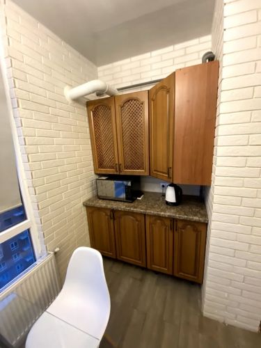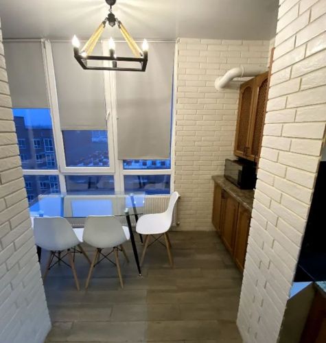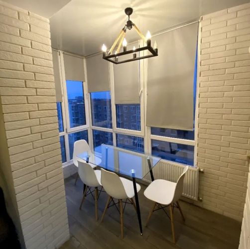 Квартира спланирована как большая кухня - гостиная с балконом и две раздельные спальни.