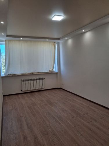 О квартире: 61/35.5/11м2, евроремонт, высота потолков 2.7м, комнаты раздельные, с/у раздельный, на полу ламинат, окна во двор, кухонная мебель