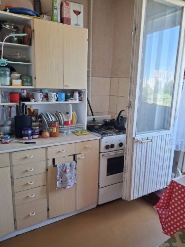 О квартире: 35/14/7м2, жилое состояние, высота потолков 2.7м, с/у раздельный, на полу линолеум, 2 лоджии, окна во двор, холодильник, мебель, кухонная мебель