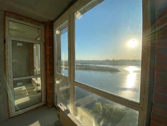 Квартира розташована на 22-му поверсі 26-поверхового будинку, що відкриває неперевершену панораму на Дніпро та правий берег Києва.