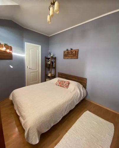 Пропонується на продаж трикімнатна квартира в районі Нового світу. Квартира дворівнева, в цегляному будинку. На першому рівні кухня, вітальня, на другому — дві спальні, вільна кімната, та 2 санвузли. Квартира з гарним ремонтом в спокійних тонах.