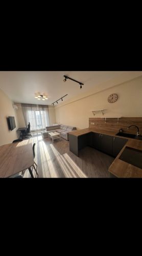 О квартире: 40/26/5м2, евроремонт, комнаты смежные, свободная планировка, интернет, TV, СМА, холодильник, мебель, кухонная мебель