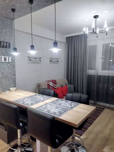Квартира укомплектована мебелью и техникой.
