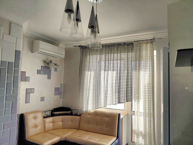 Квартира укомплектована меблями та побутовою технікою, встановлено три кондиціонери, а також систему охорони для додаткової безпеки.