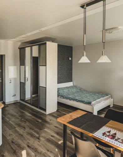 Планування: студія з меблями і технікою.