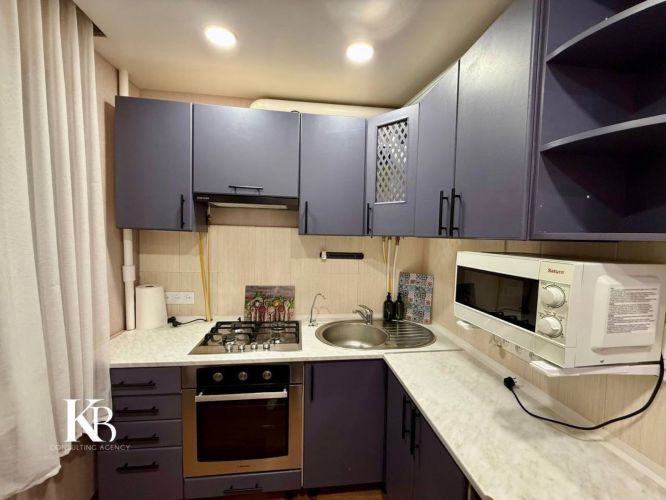 Площадь 46.6м2, кухня - гостиная и отдельная спальня.