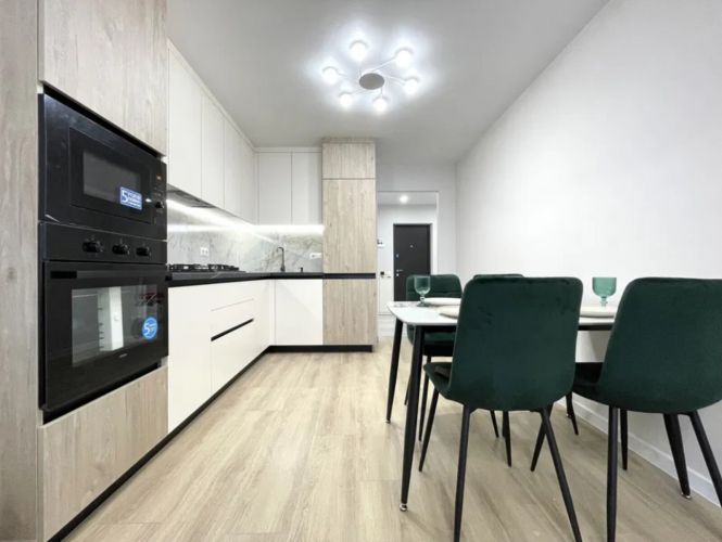 Квартира розташована на 5 поверсі 11 поверхового будинку. Загальна площа 49 кв.м, велика кухня-студія та окрема спальня, облаштована гардеробна кімната, відкрита лоджія, вхід з кухні та кімнати. Індивідуальне опалення, тепла підлога в коридорі та санвузлі.