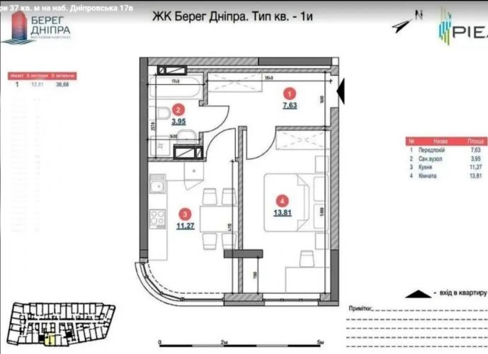 Площа 36,7 / 13,8 / 11,4 кв.м. Роздільна.