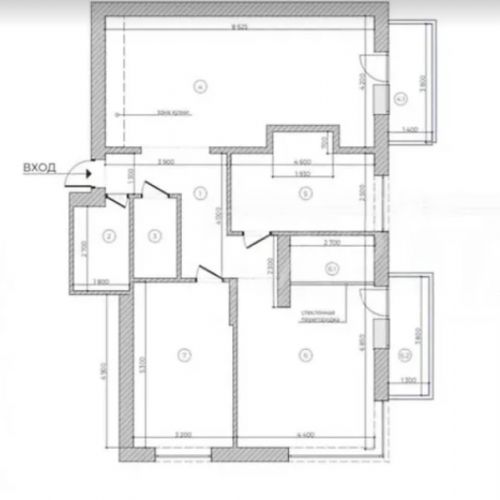 В квартирі кузня- вітальня, 3 спальні, гардеробна, 2 с/в, 2 лоджії.