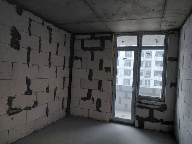 Квартира сира у новобудові, розміщена в середині будинку. Будинок зданий у 2022р., оснащений підземними парковками.