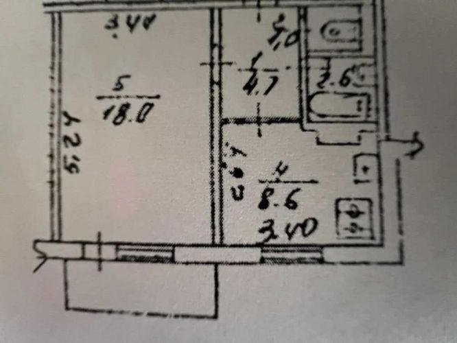 Площа 37/18/8.6 на 8/9 етаж, балкон