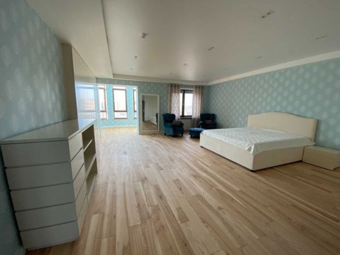 Три рівневий пентхаус - 11-13 поверхи. Оболонські Липки, Івасюка 6. Продаж панорамного пентхауса на дві сторони, східну та західну у трьох рівнях загальною площею 327,2 м2: 154,2 м2 – житлова за документами, 47 м2 – кухняu-їдальня. Продаж з меблюванням та технікою. Можливе доукомплектування меблями зі зміною вартості. Цегляний будинок. Камінний зал - 48 м2 з натуральним робочим каміном без меблів; Кухня - 47 м2: холодильник, варильна панель, посудомийна машина, кондиціонер, стіл з барними стільцями, стіл зі стільцями, фільтри очищення води; Спальня основна - 52 м2: двоспальне ліжко, два крісла, вбудовані шафи; Спальня дитяча - 26 м2: дитяче ліжко, шафа; Кабінет - 33 м2 на третьому рівні: два дивани та журнальний стіл, сейфова кімната; Пральна та сушильна машини з системою антизатоплення; Санвузол біля спальні, унітаз, біде, душова кабіна, джакузі, з системою антизатоплення; Гостьовий санвузол на першому поверсі з системою антизатоплення; Санвузол біля дитячої спальні, з ванною з системою антизатоплення; Виконано якісний ремонт власником: італійські мармурові підлоги, сходи та підвіконня, якісна сантехніка; Підлога з підігрівом. Система вентиляції та кондиціонер у дитячій; Три бойлери нагрівання гарячої води. Системи блокування води у разі протоку води на підлогу.