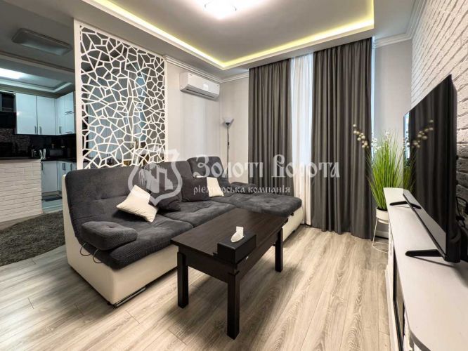 У квартирі виконано дизайнерський ремонт із використанням якісних сучасних матеріалів. Продумане зонування забезпечує максимум простору та зручності.