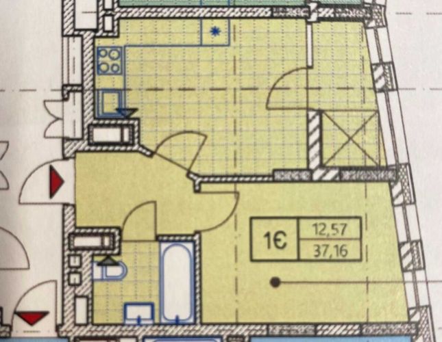 1-кімнатна квартира, Юлії Здановської вул. (Михайла Ломоносова), 33/43, Голосіївський район. Метраж 42/18/23, поверховість 5/24.