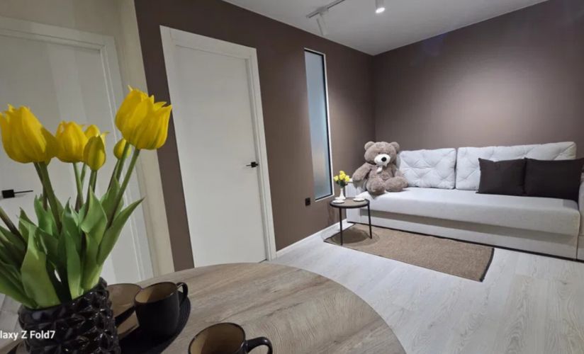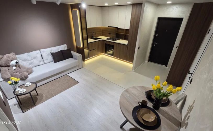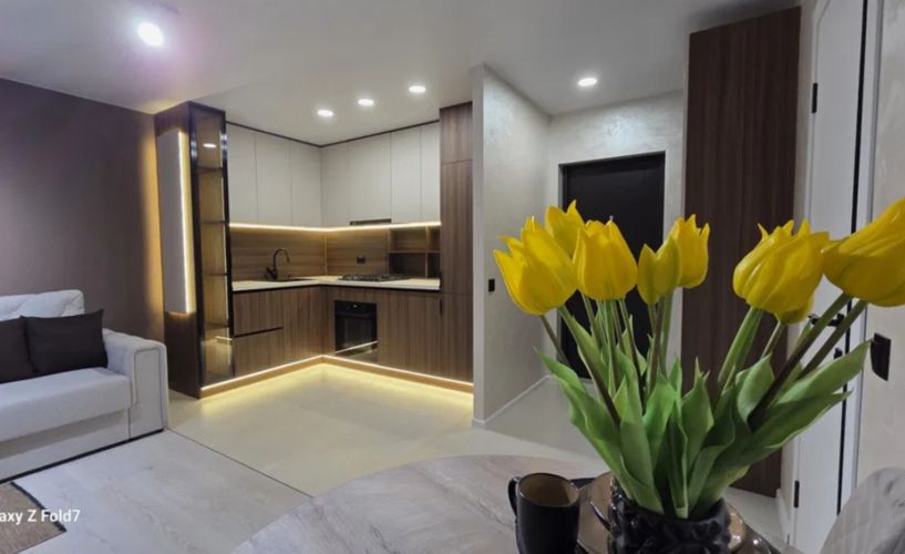 Квартира розташована на 9 поверсі. Загальна площа 55 кв.м. У квартирі повністю завершені ремонтні роботи, є необхідні для комфорту меблі та побутова техніка.