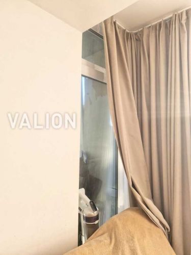 засклений балкон, прихований за стильною шторкою ідеальне місце для відпочинку;