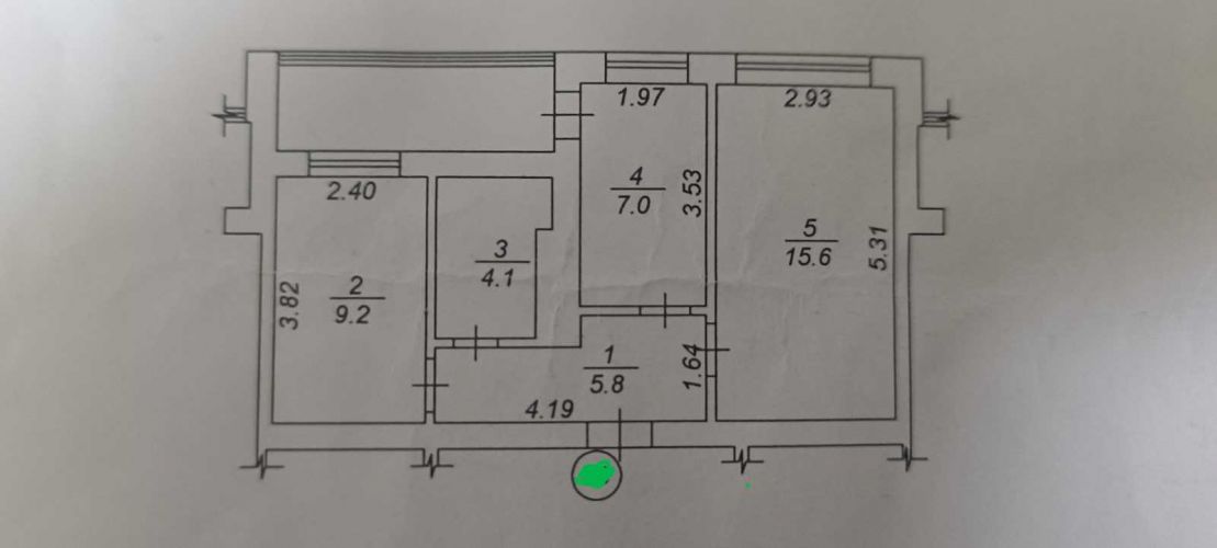 2/5 поверхового цегляного будинку,, 47.6/24.8/7 м2, Метраж кімнат; (15.6 м2 і 9.2 м2). Санвузол сумісний, балкон засклений, склопакети.