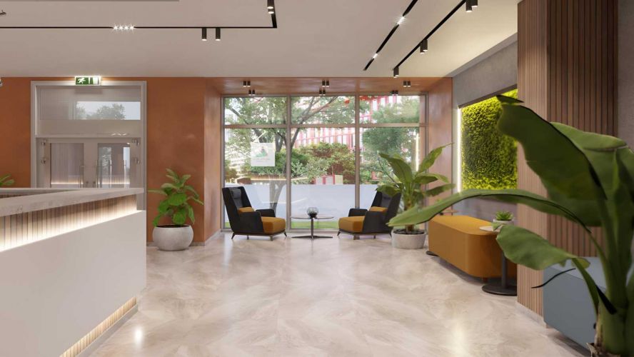 Внутрішній простір комплексу виконаний у форматі зеленого парку з ландшафтним дизайном, зонами для прогулянок, сучасними дитячими та спортивними майданчиками, а також місцями для спокійного відпочинку.