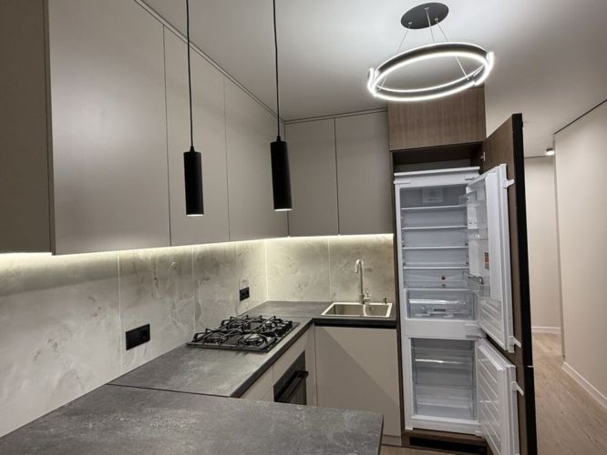 Повністю завершені ремонтні роботи, квартира укомплектована всіма необхідними меблями та технікою (кухонні меблі, двоспальне ліжко, велика шафа у прихожій, холодильник прихованого монтажу, пральна машина, духовка, газова поверхня, прихована витяжка).