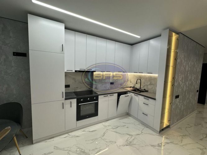 Площа квартири грамотно організована: простора кухня-студія площею 22 м? з п’ятьма панорамними вікнами, окрема гардеробна кімната, дві ізольовані спальні, сучасна ванна кімната. Квартира повністю укомплектована якісними меблями та технікою: холодильник, посудомийна машина, варильна панель, духова шафа, мікрохвильова піч, пральна машина. Встановлено два кондиціонери та система резервного живлення (автономне освітлення).