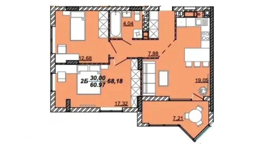 Площа - 68,36 м кв