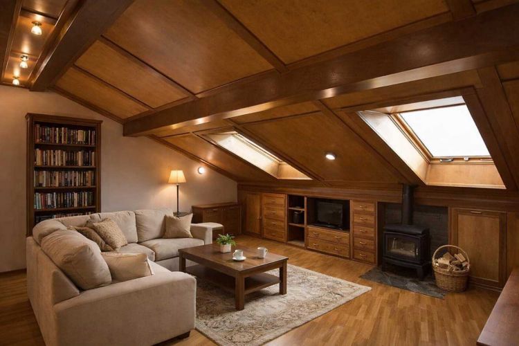 Інтер’єр виконано у витонченому класичному стилі з використанням елітних натуральних матеріалів: дубовий паркет, меблі з масиву дерева. Планування передбачає: просторий хол і кухню-вітальню на першому рівні, дві спальні та велику ванну кімнату на другому. На третьому рівні розташована мансардна спальня в стилі лофт із власною сауною.