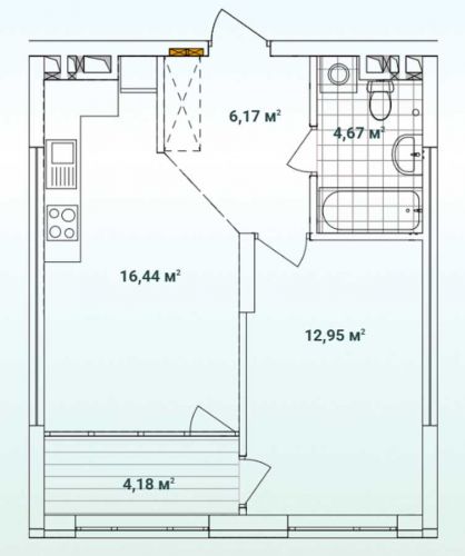 Загальна площа 44,41 кв.м