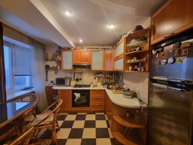 Соломенский район г.Киева, Чоколовка, бул.Чоколовский 40, 14 эт-14 эт. кирпичного дома, Кадминовский спецпроект 1978 года, двухстороняя квартира,86 кв.м.-50 кв.м.-10 кв.м,раздельные 3 комнаты-гостиная -кухня 30 кв.м.,спальня 15 кв.м. и 16 кв.м.,с.у совмещен 5.5 кв.м.,лоджия застеклена 3 кв.м. Качественный добротный ремонт 10 лет( стеклопакеты 5 камерные,новые радиаторы,поменяна вся электропроводка и сантехнические трубы,качественная сантехника,бойлер 50л,дубовый паркет,сигнализация,2 кондиционера,фильтры на воду,встроенная кухня с техникой,встроенные шкафы-купе 3 шт),высота потолка 2.75 см,очень теплая квартира,толщина стены 50 см,2 лифта в доме,консерж, красивый панорамный вид из окон..Отличная транспортная развязка,15 мин.метро Шулявская,Севастопольская площадь 1.5 км,через дорогу Радиорынок. Цена продажи 120000 у.е.